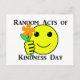 * Le 17 février, c'est la journée Random Acts of Kindness - Mais elle devrait être célébrée tous les jours. Un joli visage souriant fête cette journée spéciale avec une fleur pour vous ! **** Le magasin d'événements d'aujourd'hui propose des articles pour certains jours fériés importants, mais surtout pour les jours fériés moins connus, les jours de la semaine, etc. Classé par mois de l'événement. Si vous êtes à la recherche d'un jour férié spécifique, veuillez visiter ce magasin. ***** * Joyeux Random Acts of Kindness Day Carte postale par #TodaysEvent * Envoyez une note rapide avec cette carte postale personnalisée. Ajoutez des informations pour un événement et utilisez-les comme invitation ! * cartes postales pour le plaisir * carte postale personnalisée * cartes postales de voeux à chaque occasion * cartes postales pour dire bonjour * cartes postales pour dire bonjour * cartes postales pour toute occasion * #randomactsofness #gentillesse #gentillesse #cartes postales #cartes postales #gravityx9 #Zazzle