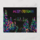 Une aquarelle numérique et lumineuse, composée d'arbres de Noël décorés, illuminés la nuit.