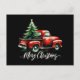 Carte Postale Joyeux sapin de Noël sur Camion Rouge Famille Vint