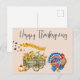 Carte Postale Joyeux Thanksgiving Dinde Citrouille Chariot