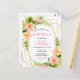 Cette carte postale de douche nuptiale ludique et fantaisiste présente des fleurs d'hibiscus rose et orange, des feuilles monstères et des feuilles sur un cadre géométrique doré. Le texte combine écriture manuscrite et polices serif pour un look élégant et moderne. C'est parfait pour une douche nuptiale rustique de printemps ou d'été.