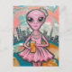 L'IA a généré l'art d'un mignon alien avec un verre de jus d'orange dans la ville dans un style art encaustique