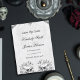 Si vous voulez avoir un mariage d'esthétique sombre alors ces gothiques à l'exception de la date mariage invitations sont pour vous! Le design présente de beaux éléments des chapelles gothiques, deux crânes avec des fleurs, et le texte affiché en évidence : "jusqu'à la mort nous sépare. Le design vintage, avec une belle calligraphie, fait que ce faire-part de mariage se combine. Consultez le reste de la collection pour trouver des articles de papeterie mariage correspondants : cartes de remerciements, RSVP, menus, faveurs de mariage et bien plus encore.
