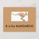 Carte Postale "K" est pour Kangaroo Alphabet Flash Card