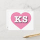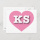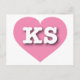 Cette carte postale est dotée d'un coeur rose vif contenant les courageuses lettres coques blanches et supérieures KS, l'abréviation officielle du Kansas, l'état du tournesol. Le verso de la carte postale est vide, en attendant vos sentiments manuscrits ou le texte customisé.