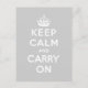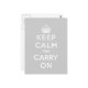 Grey and white keep calm and carry on to change size has your taste. This design makes reference to the famous poster appeared during the Second World War.