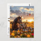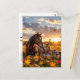 A pretty horse themed post card to say hi and keep in touch with friends and family. A beautiful scene of a mama horse and her baby foal sitting on the Autumn leaves at dusk.