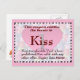 Cette carte postale a un double usage. Il s'agit à la fois d'une carte de voeux amusante et d'un coupon que le bénéficiaire peut échanger ultérieurement. L'amour et les baisers sont le thème, avec un coeur rose et des coeurs de bonbons légers à motif arrière - plan. Idéal pour la Saint Valentin ou toute autre occasion spéciale.