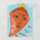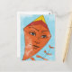 Une carte postale de cerf-volant cool, bizarre et unique, avec un cerf-volant orange sur un arrière - plan bleu ciel et un visage humain inhabituel.