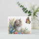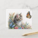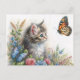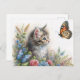 Carte Postale Kitten Staring At Butterfly Floral Art