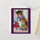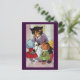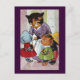 Maman chatte prépare ses trois chatons à aller à l'école. La chatte mère porte des lunettes et une robe à pois pourpre et un tablier blanc. Elle attache le capot d'un de ses kits. Les chatons portent leurs ardoises et leurs amorces et les trois chatons portent différents types de casquettes dans cette carte postale vintage de 1907.