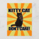 Drôle et mignon chatte chaton s'en fiche. Joli chat noir aux yeux verts jaunes, vous regardant directement comme le méchant et méchant blaireau de miel. Ce chaton s'en fiche, comme le font les chats. Arrière - plan de rayon jaune et orange avec texte noir et blanc en gras. Tous les Designs Copyright © 2012 www.CuteComfy.com