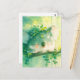 This gentle and heartwarming design features a precious, fluffy koala shown resting peacefully against a sturdy tree branch. The koala has a unique, soft green and white fur texture with sweet, closed eyes and bright orange rosy cheeks that give it a blissfully happy expression. It wears a charming crown of vibrant green leaves and tiny white blossoms, making it look like a magical spirit of the woods. The background is a wash of bright golden sunlight and emerald green foliage, with delicate vines of round leaves hanging gracefully around the sleeping animal. Intense beams of light filter down through the canopy, creating a dreamy and serene atmosphere filled with soft focus greenery. The overall aesthetic is bright, cozy, and filled with a whimsical charm, making it a perfect choice for nature lovers and fans of colorful wildlife art. This peaceful koala postcard is an ideal choice for sending a soothing "get well soon" message or a quiet note of encouragement to a friend who appreciates the magic of the natural world. You might choose to use this artistic card for a botanical-themed baby shower invitation or as a lovely way to thank a teacher for their patience and kindness at the end of the school year. It also makes a beautiful piece of mini-art for a cubicle or a calming addition to a nursery scrapbooking project as a small token of forest wonder. This versatile design is also an excellent choice for a housewarming message, a graduation thank you note, or as a heartwarming way to share a message of joy for any situation or event.