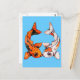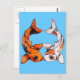 Carte postale illustrant deux poissons koi qui s'embrassent dans des tons oranges, noirs, blancs et bleu piscine. Customisez avec votre propre texte, modifiez la couleur de l'arrière - plan ou laissez-le tel quel. (il suffit de cliquer sur le bouton "personnaliser" sous l'image principale pour le faire)