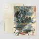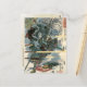 Cette carte postale d’art japonais vintage présente l’imprimé représentant le héros de guerre Sasai Kyûzô Masayasu enveloppé de fumée par une volée de feu de mousquets à la bataille d’Anegawa en 1570, de la série Taiheiki Eiyuden de Kuniyoshi, ou "Héros de la grande paix" (1846-47). L'artiste de cette oeuvre, Utagawa Kuniyoshi, était un maître incontesté de l'impression de bloc de bois guerrier et l'un des derniers grands noms dans le style ukiyo-e japonais. Né à Tokyo en 1797, il devient apprenti auprès d'un célèbre maître de l'imprimerie à l'âge de 12 ans.