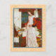 Belle peinture du 19ème siècle par William Morris intitulée La Belle Iseult et représentant une belle femme de la Renaissance dans sa chambre à coucher regardant son bureau pendant qu'elle s'habille. Couleurs vives et audacieuses.