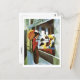 Carte postale d'art avec la peinture de l'artiste expressionniste allemand August Macke (1887-1914) intitulée Casquette Shop (1914). Une femme avec une fenêtre de parasol orange dans un magasin de casquette.