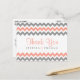 Simple mais élégante, la collection moderne chevron mariage est un design époustouflant avec un joli imprimé zig-zag dans une couleur rose, gris et blanc, parfait pour toute célébration mariage moderne. Ces cartes postales de remerciement peuvent être personnalisées pour votre occasion spéciale et vous rendraient un parfait merci pour votre mariage, douche nuptiale, fête de fiançailles, fête d'anniversaire et bien d'autres occasions spéciales. Ajoutez votre libellé personnalisé à cette conception à l'aide des cases "Modifier ce modèle de conception" situées à droite de l'élément, ou cliquez sur le bouton bleu "Customiser" pour arranger le texte, modifier les polices et les couleurs et ajouter des informations ou des images supplémentaires à cette conception.