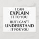 ..mais je ne peux pas le comprendre pour vous ! Une devise valable pour tout professionnel informatique, ingénieur, mécanicien ou programmeur. Grand cadeau ou tshirt scientifique pour les geeks et les nerds de toutes les convictions. Ou un professeur.