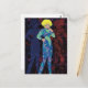 Embarquez pour un voyage cosmique avec ce dessin d'art numérique captivant. Rencontrez une femme magique venue des profondeurs de l'espace, vêtue d'une charmante tenue bleue et arborant des cheveux jaunes mignons
