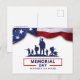 Cette carte postale poignante capture l'essence de la Journée du Souvenir avec une silhouette puissante de soldats dans diverses postures d'action, sur fond d'étoiles et de bandes du drapeau américain. Emblématisée des mots "MEMORIAL DAY - REMEMBER AND HONOR" ( JOURNÉE DU SOUVENIR - SE RAPPELER ET HONORER ) dans une police audacieuse et emphatique, la conception est un hommage à la bravoure et au sacrifice du personnel militaire. Le détail du drapeau ondule gracieusement en haut, donnant un sens du mouvement et du patriotisme à ce souvenir significatif. Cette carte postale sert de signe de respect aux hommes et aux femmes qui ont servi leur pays, parfaite pour envoyer des messages sincères de gratitude et de souvenir lors de cette solennelle fête.