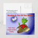 un alien d'espace vert amusant et amusant est présenté sur cette carte promotionnelle de bibliothèque. Un vaisseau spatial doré brillant et un amusant arrière - plan bleu étoilé complètent l'image. Customisez en ajoutant des détails sur les programmes de lecture de votre bibliothèque, les événements spéciaux, les heures d'ouverture ou tout ce que vous pouvez penser. Excellent outil promotionnel pour votre bibliothèque. Bonne lecture !