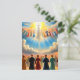 Voici une scène de style rétro représentant le Rapture. Vivieusement coloré, cet art montre une scène de Jésus apparaissant dans les cieux tandis qu'une foule en dessous regarde.