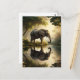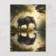 Carte postale éléphante pour rester en contact avec vos vacances. Une illustration assez sereine d'un éléphant debout dans la forêt qui se réfléchit dans l'eau. Une oeuvre d'art calme et tranquille pour vous aider à vous détendre.