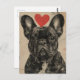 Transportez-vous dans une époque révolue avec cette carte postale vintage enchanteresse, qui met en valeur le charme délicieux d'un Bulldog français niché dans un motif cardiaque. La scène sépia rayonne d'une chaleur intemporelle, capturant l'esprit affectueux de cette race bien-aimée. Un tableau plein de chaleur qui vous invitation à savourer la nostalgie et à célébrer l'endurante compagnie du French Bulldog dans un cadre classique et romantique.