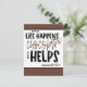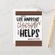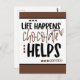 Envoyez à quelqu'un des vibes positives avec une pointe d'humour avec la citation Life Happens Chocolate Aide dans un mélange de typographie noire et marron avec un coeur et de petits motifs carrés sur un arrière - plan blanc qui peut être changé à une autre couleur si vous le souhaitez, avec des bordures de chocolat brun au dessus et au bas bordures bordées de noir.