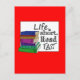 Le dessin dit : "La vie est courte. Lisez vite." dans une variété de polices différentes. Elle est accompagnée d'une image numérique d'une pile de livres de poche.