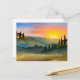 Belle carte postale avec une citation Rumi inspirante sur paysage aquarelle arrière - plan représentant les collines ondoyantes de Toscane au coucher du soleil. La citation de Rumi dit : "La vie est un équilibre entre tenir et laisser aller."