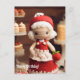 Personnalisez le texte si vous le souhaitez ou gardez-le simplement. Laine et amis - la combinaison parfaite ! Salutations d'amis et de collègues. Jolie dame au crochet avec un chapeau rouge. Robe rouge et rouge. Cookies et gâteaux sur les étagères, fraise ou pomme à la main.