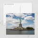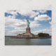 Vue de la Statue de la Liberté dans le port de New York contre un ciel d'été bleu avec des nuages blancs bouffants