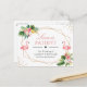 Modèle d'annonce de report d'événement - Carte postale florale tropicale flamants géométriques L'amour est patient.