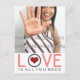 Cartes postales de la Saint Valentin et cartes "L'amour est tout ce dont vous avez besoin". Cartes postales de la Saint Valentin, de red_dress, avec les mots "L'amour est tout ce dont vous avez besoin" et un modèle photo personnalisé. Le corail rose et gris Love design graphique avec un coeur rouge est imprimé sur un arrière - plan blanc personnalisable. Insérez facilement des images et créez des cartes postales "L'amour est tout ce dont vous avez besoin" en ligne, avec vos photos et vos citations d'amour préférées. L'exemple de photo utilisé est à des fins d'illustration seulement. LA PHOTO N'EST PAS INCLUSE.