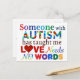 Citation de l'autisme inspirateur "Quelqu'un avec l'AUTISME m'a appris l'AMOUR n'a PAS besoin de MOTS" avec des mots colorés et des puzzles d'autisme pour soutenir les enfants autistes et leurs familles.