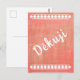 Carte postale Merci en tchèque avec un motif de diamant blanc sur un fond de corail saumon texturé.
