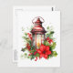 Carte Postale Lanterne rouge de Noël Poinsettia et pin