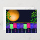 lanternes chinoises colorées et une lune jaune vif avec un peu de feuillage sur les côtés.