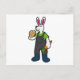 Carte Postale Lapin en fermier avec carotte et chapeau