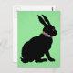 Cette carte postale a un lapin de Pâques ou Printemps assis en silhouette noire avec une couronne de jolies fleurs colorées autour du cou et un oeil rose sur un arrière - plan vert clair.