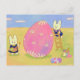 Des lapins de Pâques décorant une carte postale d'oeufs. Idéal pour envoyer des voeux de Pâques à travers le monde.
