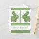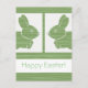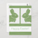 Des chouettes lapins verts de Pâques sur une carte postale de Pâques joyeuse. Cliquez pour modifier le message d'accueil. Vide au verso, sauf pour l'icône de timbre et le séparateur.