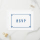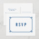 Carte postale simple et minimaliste Deco Chic Wedding RSVP avec une bordure décorative moderne d'art bleu foncé. Cette carte de réponse classique et élégante est facile à customiser avec vos détails mariages. Pour plus d'options de personnalisation, cliquez sur Personnaliser.