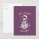 Cette carte postale est conçue pour ceux qui attendent une fille. Ce design est un grand cadeau ou flasher d'actualités pour bébé sexe révéler des parties. Le dessin est composé d'une jolie illustration de style kawaii d'une fille astronaute assise sur une petite planète accompagnée du texte "c'est une fille".