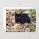 Automne est ici - ajoutez votre texte personnalisé. Un chat noir en automne laisse la photographie.