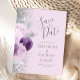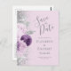 Cette élégante carte postale moderne, à l'exception de la date, présente un design floral violet et lavande, paré de parties scintillant en faux argent. Le texte personnalisable combine un script d'écriture manuscrite grise et une police de cuivre sur un arrière - plan lavande. Le verso répète les informations, ainsi qu'une adresse de retour personnalisable.
