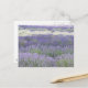 Carte postale avec belle photo d'un champ de fleurs de lavande dans différentes nuances de violet et blanc
