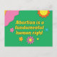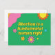 L'avortement est un droit humain fondamental écrit en police jaune rétro sur un design hippie funky pour une féministe pro choix. Montrez votre esprit amusant avec cette carte postale mignonne aux jolies fleurs tout en défendant les droits des femmes et le mouvement pro-choix.